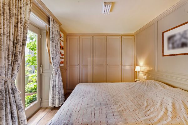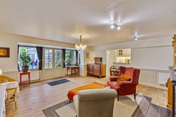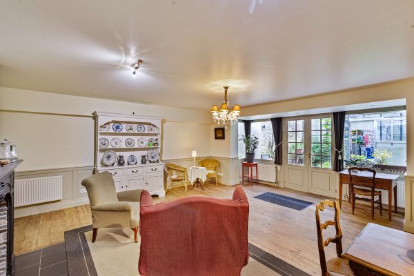 Instapklaar in cottagestijl ingericht appartement met leefruimte, keuken, berging, slaapkamer en badkamer. Zowel de slaapkamer als de leefruimte geven uit op het terras met aanpalende tuin. Er is een serre palend aan het terras die gebruikt wordt als bergruimte.