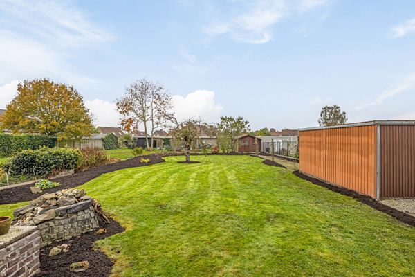 Het perceel omvat momenteel een te renoveren woning met leefruimte, keuken, badkamer, slaapkamers en berging, alsook een serre, tuinhuis en garagebox.