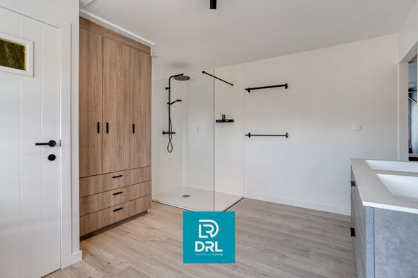 - 1ste verdieping: ruime slaapkamer en grote badkamer met inloopdouche, toilet en dubbele lavabo