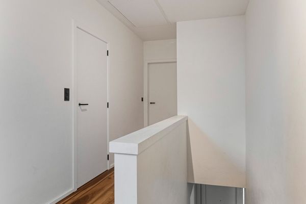 Op de verdieping bevinden zich een ruime badkamer met bad en douche, een apart toilet, drie volwaardige slaapkamers, waarvan één met inloopdressing en een zolderruimte. Verder beschikt de woning over een aparte garage en een afgesloten oprit met plaats voor minstens twee wagens.