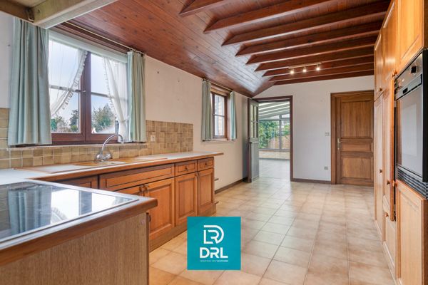 Via de inkomhal betreedt u de woning, die directe toegang biedt tot de lichtrijke leefruimte en de bijzonder ruime keuken. Aansluitend aan deze keuken is er een kleine opbergkelder, een aparte bijkeuken en een later aangebouwde veranda van ca. 20 m², die zorgt voor extra leefruimte en een aangename connectie met de tuin.