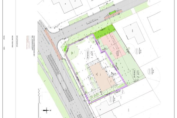 Het oorspronkelijke perceel van 1.746 m² werd opgesplitst in twee afzonderlijke loten: (zie opdeling via bijgevoegd plan)