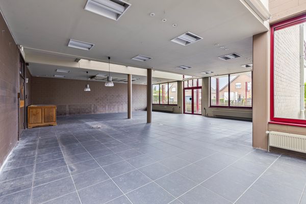 Grote polyvalente ruimte geschikt als kantoor, handel of groepspraktijk met erboven een appartement met 4 slaapkamers nabij E40 te Landegem.