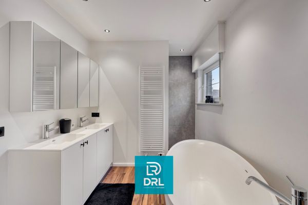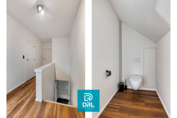Op de eerste verdieping bevinden zich drie volwaardige slaapkamers, een dressing, een ruime badkamer en een apart toilet. De zolder biedt bijkomende mogelijkheden naar inrichting of opslag.
